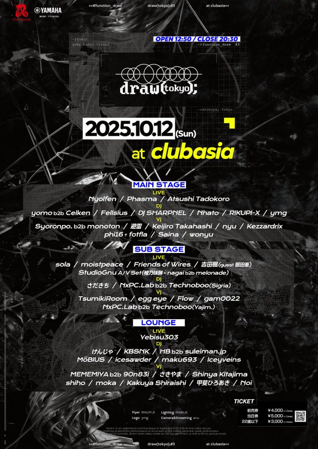 2025/10/12(SUN) draw(tokyo); #3 in 渋谷Club AsiaにDJ SHARPNEL(DJ)出演